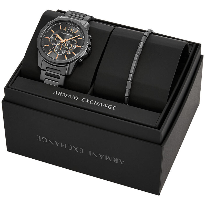 Armani Exchange Banks AX7170SET: set con orologio e bracciale canna di fucile, per un look moderno, urbano e deciso. Perfetto da regalare o da indossare ogni giorno, aggiunge carattere e stile contemporaneo a ogni outfit.